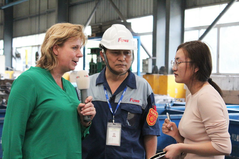 NOS驻东亚记者费玛丽女士一行三人,先后到访了位于佛山顺德的乐竞网页版集装箱制造基地以及台山的乐竞网页版重工制造基地。